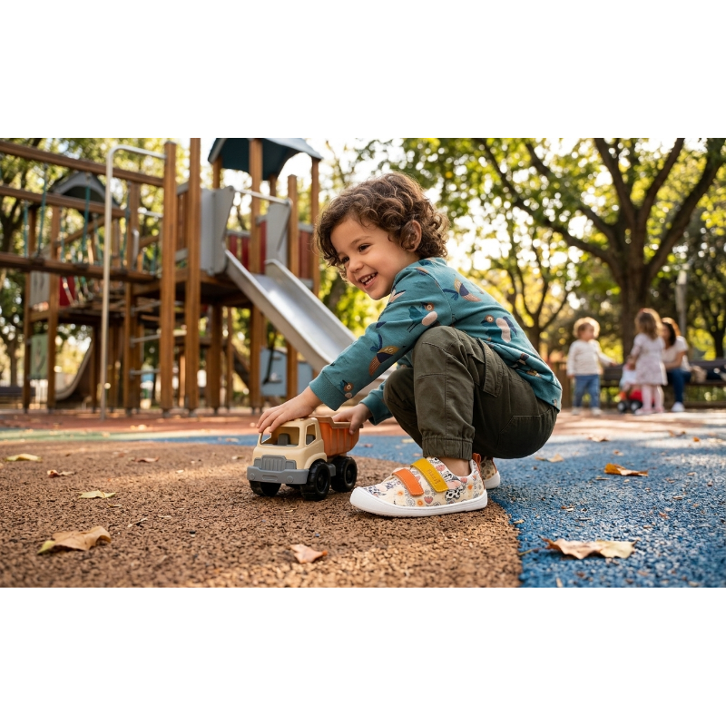 Zapatillas infantiles Flexinens (Nens) con estampado de dibujos papaya ligeras y transpirables.
