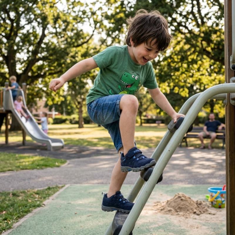 Su suela flexible y con buen agarre proporciona mayor estabilidad en caminos y superficies irregulares, para que puedan correr, jugar y explorar con confianza.